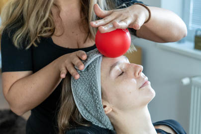 Nadštandardný tréning, ktorý dostane tvoju tvár do formy. Využívame všetky dostupné techniky a technológie, aby sme stimulovali svaly na tvári viacerými spôsobmi. Pri tomto tréningu máme dostatok času na uvoľnenie okolia tváre, ktoré je dôležité pre správne prekrvenie a vyživenie pleti. Začíname rozcvičkou, pri ktorej očistíme pleť, natiahneme a aktivujeme svaly pomocou face loptičky. Po rozcvičke prejdeme na manuálne techniky pomocou rúk a Gua-sha kameňa, pri ktorých zacielime na problémové miesta na tvári a venujeme im maximálnu pozornosť. Ďalším krokom je EMS prístroj, pri ktorom naplno využijeme jeho potenciál a venujeme sa všetkým detailom a mimickým vráskam na tvári.